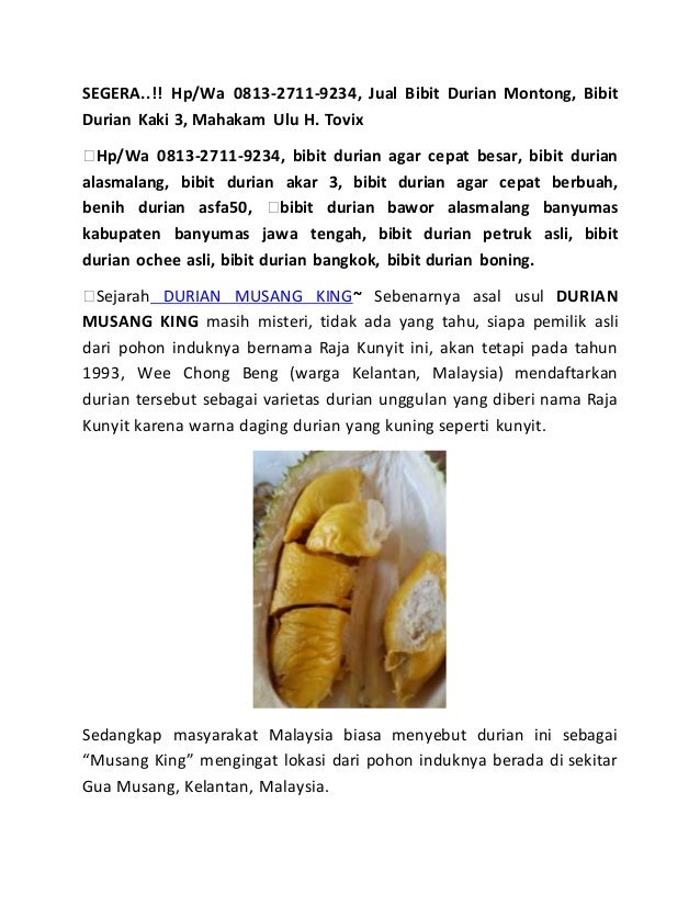 Durian musang king pada awalnya dikenal dengan nama durian mao shan wang yang artinya raja kucing. Rasanya yang berlemak dan berkrim menjadikannya sebagai antara baka durian yang terbaik dan sangat popular di malaysia. Berbeda dengan durian lokal lainnya yang bijinya cukup besar. Manfaat cangkang telur bersama beta probiotik multifungsi. Sementara, asal usul dan sejarah ditemukannya durian jenis ini pertama kali oleh sarno ahmad darsono. Durian dengan bibit asal malaysia ini dikenal sebagai durian terbaik di dunia. Durian harvests specializes in malaysia's musang king durian variety which is also known as mao shan wang or d197. Dalam video ini menceritakan tentang sejarah dan asal usul durian musang king. Durian asal malaysia ini terkenal enak, berdaging tebal, manis dan legit. Walaupun tanah merah, kelantan adalah asal usul d197 musang king, raub dan. Lima pohon itu punya banyak kaki di batangnya. Durian musang king merupakan sebuah pelang bisnis yang menjanjikan alasannya durian sangat di sukai oleh kebayakan orang, anda bisa menjual kapan saja karena ini bukan bisnis musiman. Durian musang king disepakati oleh hampir segenap masyarakat tanahair sebagai jenis durian terbaik di malaysia.