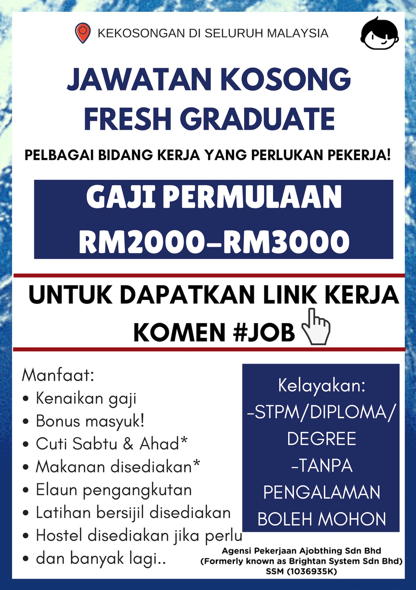 Fresh graduate and spm leavers are encouraged to apply.