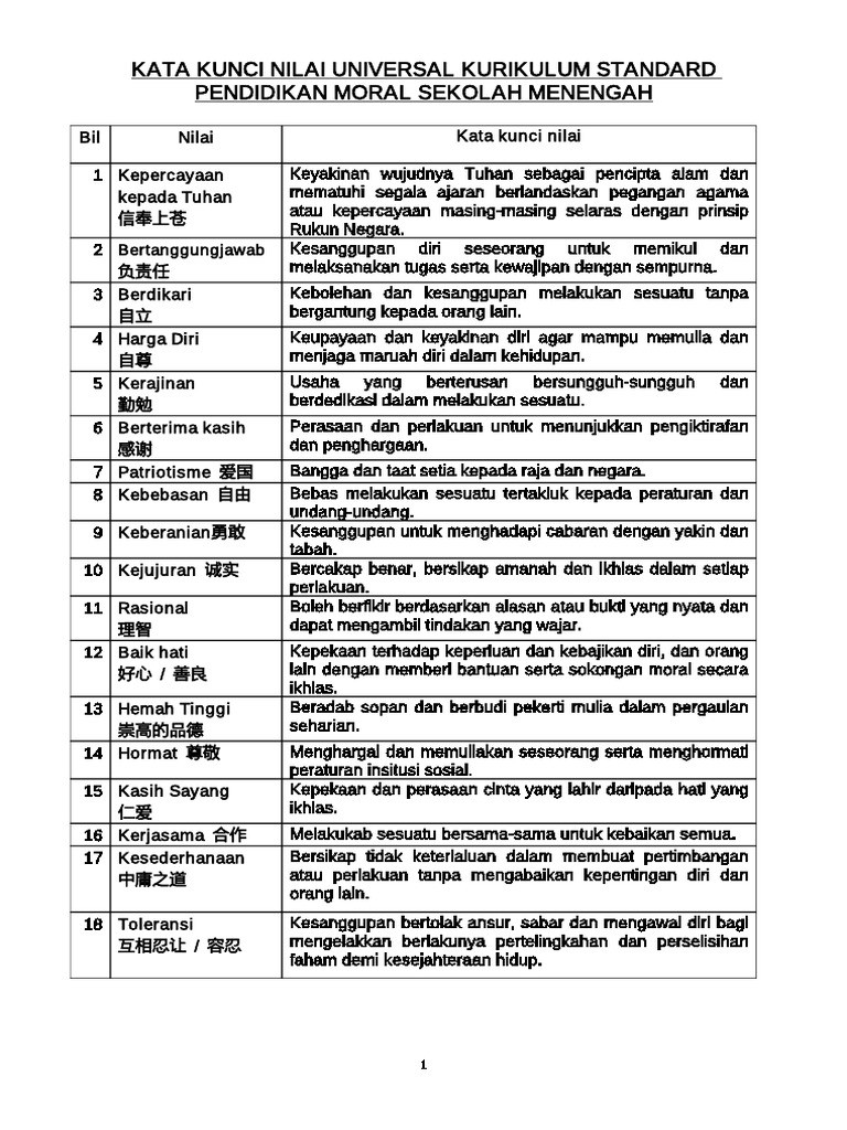 Tanggung jawab akan kesadaran terhadap perbuatannya ia harusnya. Sementara itu, nilai moral buruk berkaitan dengan prilaku yang menyimpang dari norma sosial dan akan menimbulkan masalah hingga konflik sosial yang bisa jadi dipicu olah perubahan sosial. Dengan kata lain, moral values. Nilai nilai moral, yeni bir fotoğraf ekledi. Nilai moral atau etika merupakan nilai yang berkaitan dengan baik buruknya suatu perbuatan yang berlaku dalam masyarakat. I made this video for spm students. Nilai moral dalam konstitusi yang bersumber dari pancasila ialah sebagai berikut Seseorang yang mempelajari nilai hidup dan moral serta kemudian berhasil memiliki sikap dan tingkah laku sebagai pencerminan nilai hidup itu umumnya adalah seseorang yang hidup dalam lingkungan. Perkongsian soalan, nota, latihan, skema jawapan, bahan rujukan dan informasi terkini blog usaha padu dapat membantu para guru, pelajar dan ibu bapa. Tugas sekretaris selain mengerjakan administrasi adalah juga harus. Nilai semantik ialah suatu konstitusi yang berlaku dimana hanya untuk kepentingan penguasa saja. Facebook'ta nilai nilai moral'ın daha fazla içeriğini gör. Hope you guys learn this song to help you memorize easier.